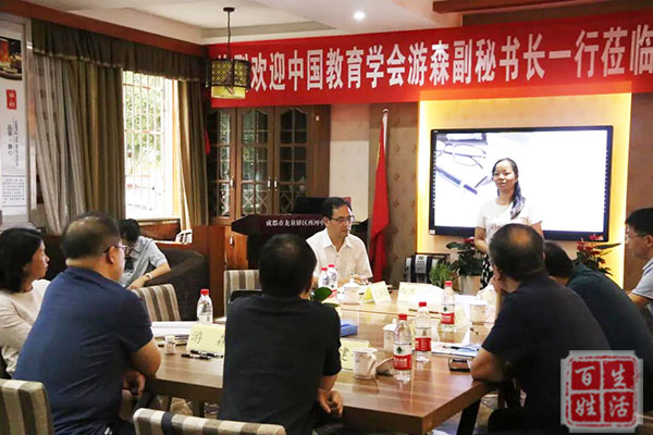 百姓生活讯(张盛其)2021年9月8日上午,晨雨零星,金桂飘香。微雨后的西河中学空气清新、绿意盎然。在“五育并举”的教育大背景下,在落实“双减”政策的风口浪尖上,中国教育学会副秘书长游森百忙之中,专程从北京来到龙泉驿区进行工作调研。今天第一站首先来到了西河中学。中国教育学会中小学教育质量评价办主任秦建平、副主任张惠等专家团队,成都经开区教育局副局长张英武、督导办主任唐晓辉、龙泉驿区教科院院长周文群和学业质量监测部部长龙兴议等领导随同参加调研活动。