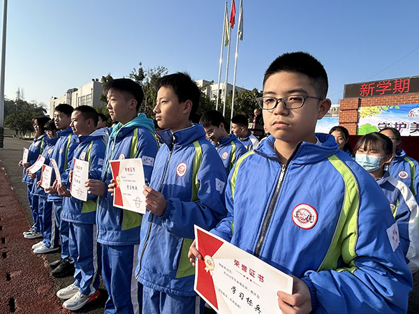 学校党总支书记黄德良发表了以“发扬奋斗精神、促进全面发展”为主题的讲话,黄书记首先回顾了不平凡的2022年,接着以习近平总书记的新年贺词为切入点,对全体师生提出新学年新学期的殷切希望。新学期,黄书记寄语全体同学:见贤思齐焉,见不贤而内自省也。最后,黄书记代表学校提出两点要求:(一)安全与稳定、传染病防控细致抓,慎终如始。(二)五育并举、全面发展有效抓,见贤思齐。