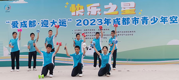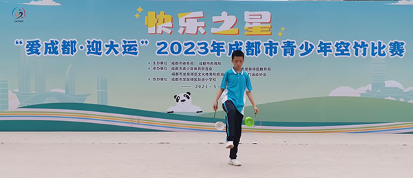 近日,成都市体育局、教育局、市空竹协会联合举办的快乐之星“爱成都 迎大运”2023年成都市青少年空竹比赛。来自全市的1300多名中小学生、幼儿选手们在比赛中展示了他们的空竹技巧和艺术表现,成都市玉林中学受邀前往龙泉驿参加了此次活动,收获满满。