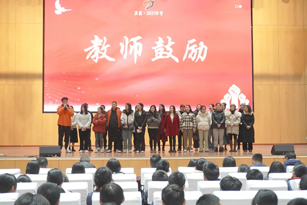 全体初三教师按学科组上台为初三学子加油,用学科特色的励志口号为学子送上“最强应援”,将现场气氛推向高潮。