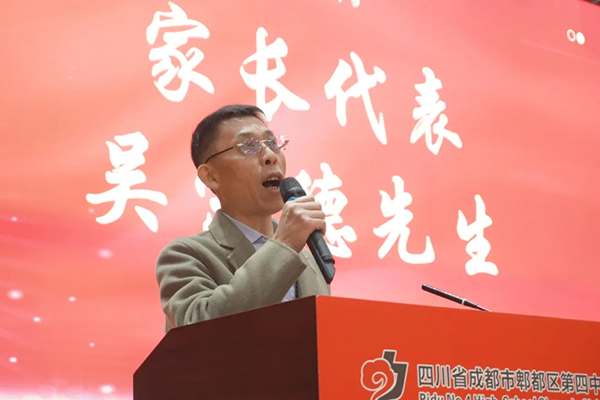家校同心·合力护航。家长代表吴先生登台发言,以“陪伴者”身份承诺全力支持,共情学生压力,强调百日意义,激励学子奋进。