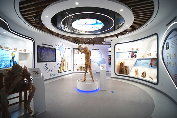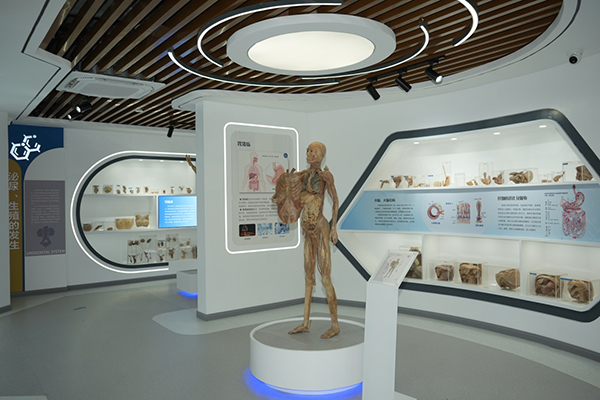 成都铁路卫生学校生命科学馆占地约780平方米,馆内陈列了300多件真实的人体解剖标本,20多套智能设备,就像打开了一本立体的“生命百科全书”,馆内陈列着从微观细胞到宏观人体九大系统的各类标本,每一个展品都像是一位无声的导师,讲述着生命的奥秘。