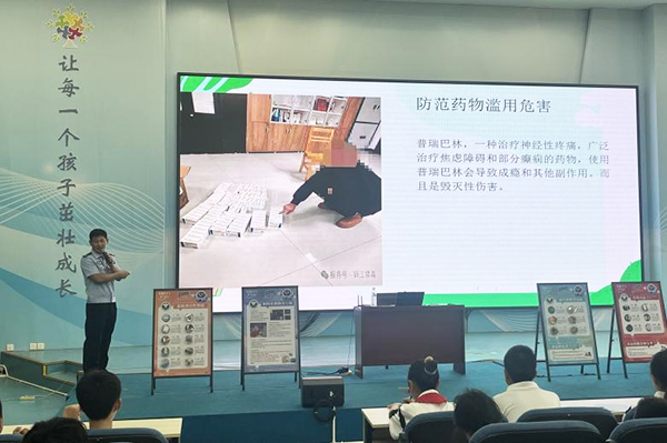 防范药物滥用 :陈警官还讲解了莫达非尼、“笑气”、丁烷等药物滥用的危害,告诫同学们不能因好奇心、虚荣心或哥们义气而接触这些物质,要坚决对毒品说 “不”,远离毒品诱惑。