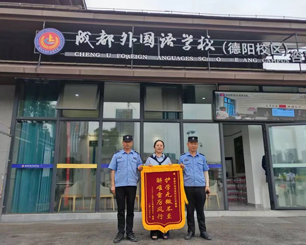 近日,德阳成都外国语学校后勤服务中心收到了一面由初三家长送来的锦旗,红底金字上“护学无微不至,解难雷厉风行”十二个大字熠熠生辉,而这面锦旗背后,是无数个暖心故事。