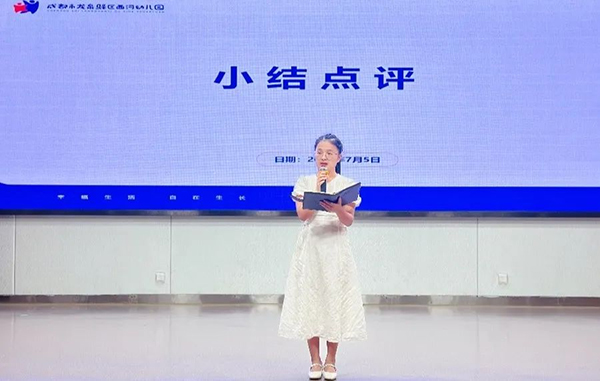 活动最后,西平园区保教主任杨蓥蓥进行了全面点评与总结。首先她肯定了教师在教学实践中的智慧与反思,在教师的分享中能够看到故事主题鲜明、内容连贯、结合本土文化的特点,同时,在课程实施中能够看到孩子的发现与探索,也能看到教师分析问题的详细和深度,能看到教师课程观的转变。