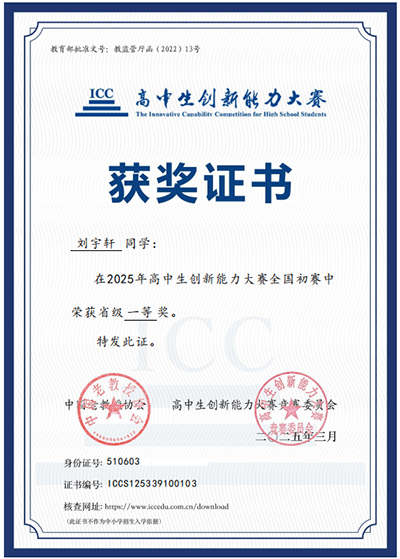 据悉,高中生创新能力大赛是2022-2025学年面向中小学生的全国性竞赛活动名单项目,是针对高中生创新潜质发掘和评价的竞赛活动,由中国老教授协会主办,中国教育发展战略学会高中教育专业委员会提供学术支持,每年举办一届。2024年成都外国语学校德阳校区第一次参加该项活动获得一等奖1人、二等奖1人、三等奖3人、优秀奖4人的好成绩。2025年高中生创新能力大赛全国初赛共有来自33个省级行政区千余所高中的50万余名学生踊跃报名,创造了自大赛创办以来参赛规模之最。在今年的省级选拔笔试中,成都外国语学校德阳校区学生获得省级一等奖4人、二等奖17人、三等奖13人,其中刘宇轩(物理类)、刘珮琳(历史类)两位同学晋级全国复赛,4月12日至13日在成都举行的全国复赛中刘宇轩同学顺利晋级全国决赛。在更加激烈的竞争中,成都外国语学校德阳校区获奖人数较去年均有大幅提高,并首次晋级7月份全国决赛,全国决赛考试形式为现场教学即时测评:满分200分,主要考察学习与运用能力、知识迁移能力、审辩式思维能力。刘宇轩同学经过初赛、省级复赛、全国决赛一路拼搏,勇夺全国三等奖,充分体现了成都外国语学校德阳校区拔尖创新人才贯通制培养十二年一贯制优势。成都外国语学校德阳校区将秉持“尊重差异、提供选择、多元发展”的学生特长发展理念为拔尖创新人才提供多元出口途径,欢迎莘莘学子报考德阳成都外国语学校。