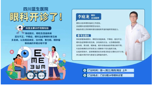 为进一步满足人民群众对眼健康多层次、多样化的新需求,持续提升患者就医体验,四川蓝生医院眼科于12月10日正式开诊!科室不仅拥有舒适的就诊环境、先进的治疗设备,更具备人性化的服务细节,致力于为全年龄段人群提供综合眼病的预防、诊断与治疗服务。
