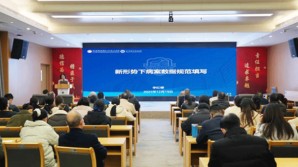 陈莹副院长主持培训会并发表致辞。她强调,当前医保支付方式改革不断深化,医疗质量监管体系持续完善,病案数据质量已成为影响医院运营效能与长远发展的核心基石。本次培训会聚焦全院医务人员在病案数据填写中面临的疑点与难点,旨在帮助大家精准掌握填写规范、全面提升数据质量,为医院高质量发展夯实数据支撑。