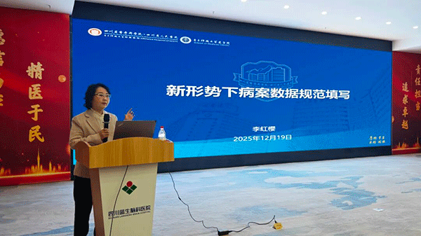 为持续提升病案数据质量,主动适应医保DRG支付方式改革要求,推动医院精细化、规范化管理,12月19日,四川蓝生脑科医院于学术报告厅成功举办住院病案数据规范填写专项培训会。会议特邀中国卫生信息与健康医疗大数据协会医院统计专委会常委、四川省卫生健康委病案质控中心主任、四川省人民医院病案科主任李红樱教授莅临授课。黄光富院长出席会议并作重要讲话,全院各临床科室主任、副主任、医疗组长、住院医师,以及相关职能部门负责人与骨干参会。