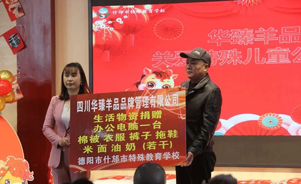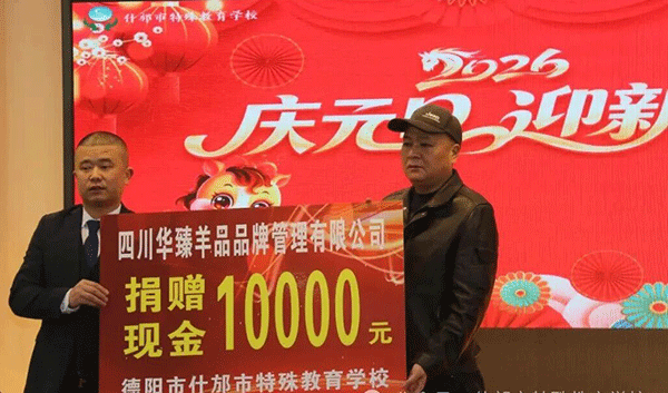 时光荏苒,2026年元旦的脚步悄然临近。为弘扬中华优秀传统文化,营造喜庆祥和的节日氛围,什邡特校于12月26日上午开展以“传承文化薪火,喜迎元旦新篇”为主题的才艺大赛活动。当日,四川华臻羊品品牌管理有限公司的龙腾乳业华臻羊品的全国总经理魏玉全先生、全国运营总监张容女士、全国大区经理白孝勤女士、全国大区经理吴健有先生以及龙腾乳业华臻羊品各市场负责人代表携一众长辈带着满满的关爱与诚挚的祝福,走进学校开展“华臻羊品关爱特殊儿童公益行”活动。与全校师生欢聚一堂,共赴这场浸润着传统韵味的新年之约,更为本次才艺大赛注入了脉脉温情。