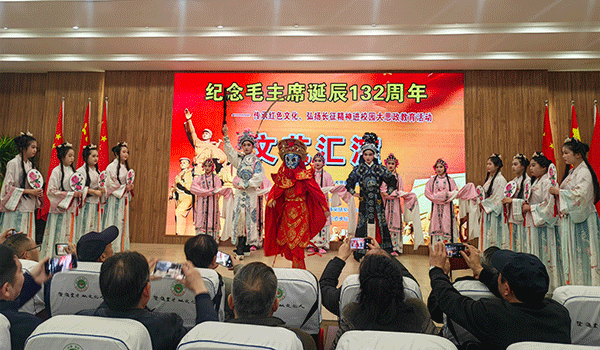 在表演环节,演员们以饱满的热情和精湛的技艺,为观众呈现了一场精彩纷呈的文艺盛宴。诗歌朗诵《沁园春·雪》、男女生小合唱《复兴之梦》、舞蹈《毛主席著作闪金光》等节目轮番上演,赢得了阵阵掌声。特别是器乐三重奏《太阳最红毛主席最亲》、女声独唱《复兴的力量》等节目,尤其是川剧社团的节目更是将活动气氛推向了高潮,现场掌声不断。