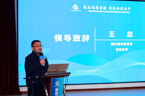 启动仪式环节,各项议程有序推进,为工作室发展奠定坚实基础。都江堰市教育局党组成员王忠致辞,他对工作室的启动表示热烈祝贺,肯定了工作室在搭建校长交流平台、助力区域教育协同发展中的重要作用,并结合都江堰市教育发展实际,对工作室未来运行提出殷切期望。