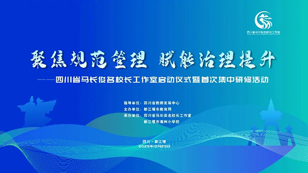 12月25日,四川省马长俊名校长工作室启动仪式暨首次集体研修活动在都江堰市灌州小学校隆重召开。四川省教师发展中心副主任崔勇、都江堰市教育局党组成员王忠、都江堰市进修校校长周蓉莅临现场指导,活动特别邀请四川师范大学教育科学学院教授李江源、成都市石笋街小学教育集团党委书记张友红担任指导专家。来自全省13个地市州15个工作站的70余名学员齐聚一堂,共赴这场聚焦校长专业成长与学校高质量发展的研修之约。
