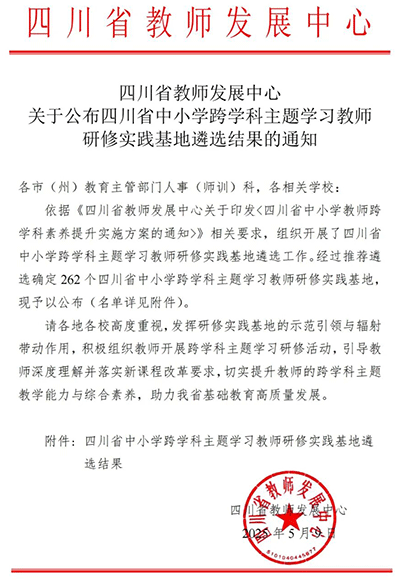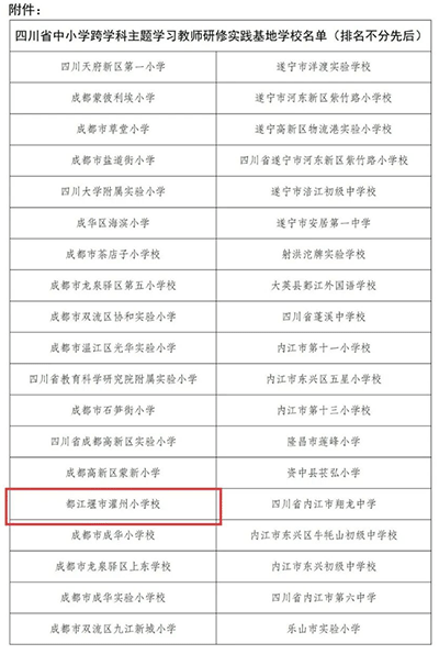 5月9日,都江堰市灌州小学成功入选“四川省中小学跨学科主题学习教师研修实践基地”,是对学校教育教学改革成果的高度认可。