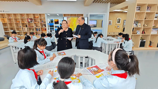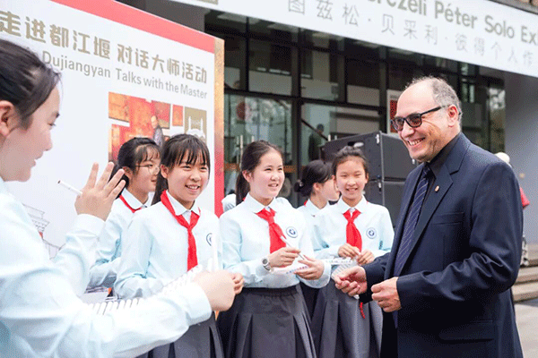 4月14日,作为“成都-欧洲文化季”首场活动配套环节,匈牙利画家图兹松?贝采利?彼得走进灌州小学,与师生展开深度艺术交流。