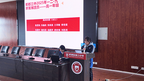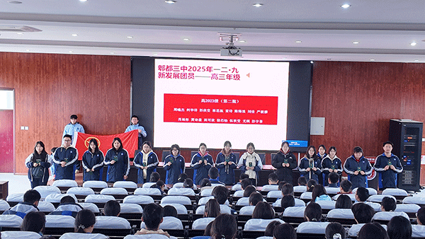 青春向党,筑梦启航。为凝聚澎湃青春力量,引领广大学子筑牢信仰之基、担当时代之责,12月26日,郫都区第三中学隆重举行“凝聚青年力量,共筑青春梦想”2025年秋季新发展团员入团仪式。郫都三中副校长张小林、校团委书记邓思思、团委成员与全体新发展团员共同见证这一庄严时刻。仪式由李晓冉同学主持。