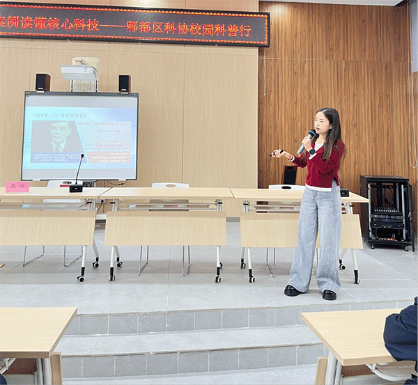 本次讲座特邀郫都区科技工作志愿者、成都中科蜀都大数据有限公司技术总监陈红老师主讲,她以“AI就在身边,从日常案例读懂核新科技”为主题,为全校师生带来了一场兼具理论深度与实践温度的科技盛宴。