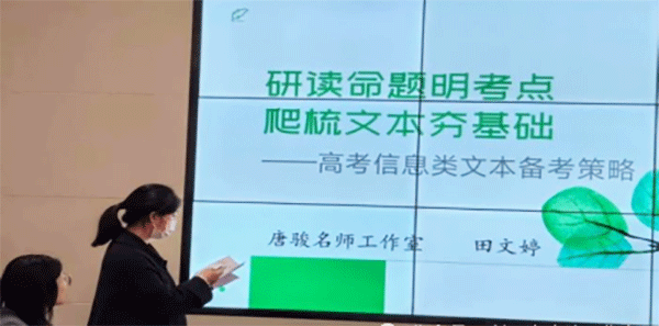 田老师以 2022-2025 年高考真题为核心,梳理信息类文本的命题特点:一是选材聚焦 “立德树人”,文体以论述类为主,且 “学考衔接” 紧密;二是题型固定为 “3 道客观题 + 2 道主观题”。她同时指出学生备考中存在的 “阅读习惯差、设误敏感度低” 等问题,并针对性提出三大备考策略:一是 “衔接教材与真题”,强化知识迁移能力;二是 “构建文体知识体系”,让学生掌握论述类文本的核心特征;三是 “分题型强化解题能力”,助力学生提升信息筛选、观点迁移等关键能力。