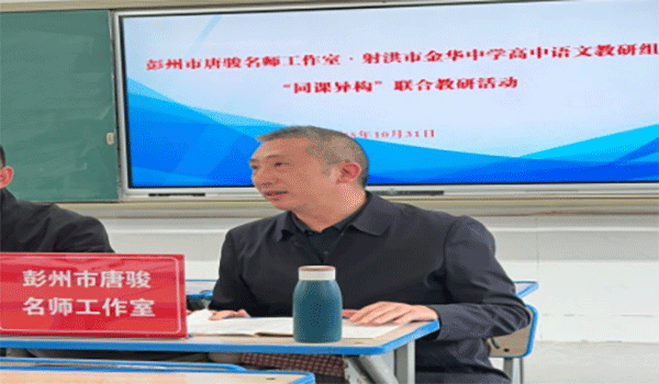 为深化语文学科建设,拓宽教学视野,全面提升工作室成员的综合素养,日前,彭州市唐骏名师工作室成员在领衔人唐骏校长的带领下,赴四川省射洪市金华中学开展了一场深度交流与送教活动。本次活动以“同课异构、评课研讨、文化浸润、经验共享”为主线,内容充实,成效显著。