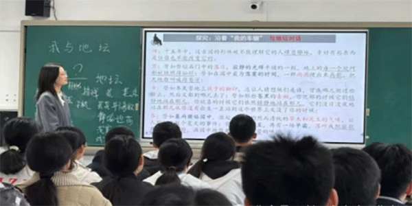 胡老师的课堂以学生自主拟定的标题为导入,迅速聚焦于“我”、母亲与地坛三大核心。她巧妙以“我的车辙”为线索,引导学生与地坛展开一场深度“对话”。通过精析地坛“荒芜但不衰败”的景象特征,她层层递进地阐释了这片精神家园如何支撑作者完成从“思考生死”到“领悟怎样活”的灵魂蜕变。课堂尾声,胡老师适时引入海德格尔的名言,将文本主题升华至“生命永恒”的哲学高度,实现了语言品味与思想启迪的有机统一。