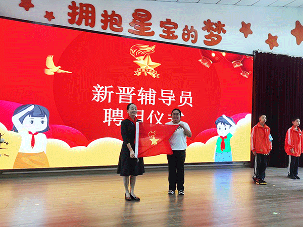 活动在庄严的升旗仪式中拉开帷幕。伴随着嘹亮的国歌,全体师生面向国旗肃立,少先队员行队礼,表达对祖国的热爱。随后,学校少先队大队辅导员带领新队员重温入队誓词,辅导员为新队员佩戴红领巾。在星星火炬的旗帜下,新队员们目光坚定,用简单却有力的手语表达“时刻准备着”的决心,展现了特殊少年昂扬向上的精神风貌。在活动中,张璐校长也为新晋中队辅导员授予了聘书,鼓励继续用朝气蓬勃的青年精神,带领少先队员继续前行。
