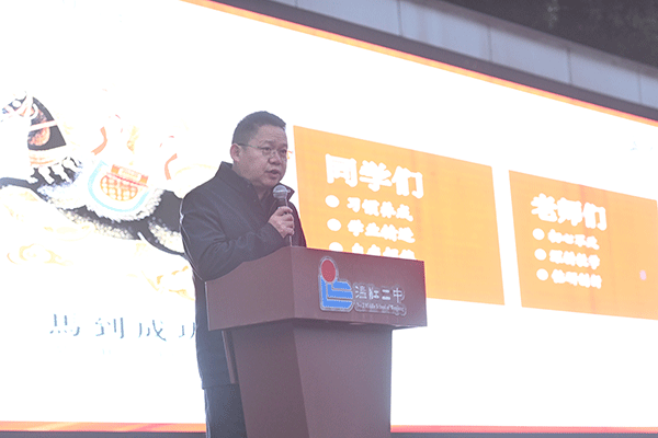 他赠予全体师生三个新年关键词:热爱、自信、坚毅。深植热爱,定义成长底色:热爱脚下的土地、热爱知识本身、热爱生活与彼此;锻造自信,凝聚内生力量:在尝试与突破中积累正向反馈,让由内而外的自信,成为迎接一切挑战的坚实支柱;淬炼坚毅,铸就精神坐标:以“千磨万击还坚劲”的执着,在日复一日的积累中锤炼心性。