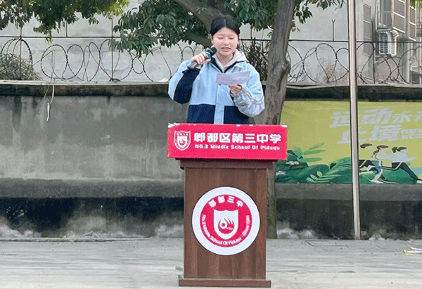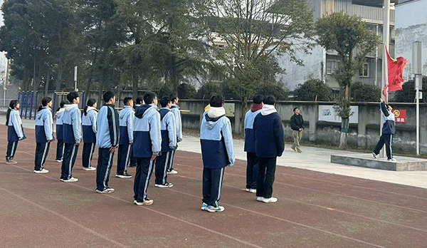 为厚植学子家国情怀,激发期末备考斗志,四川省成都市郫都区第三中学(文中简称:郫都三中)于近日隆重举行“逐梦前行,不负韶华”主题升旗仪式。全体师生整齐列队,迎着朝阳,共同见证这庄严时刻。主持本次升旗仪式的同学是高一·9班的李梓瑄同学。