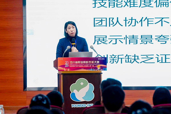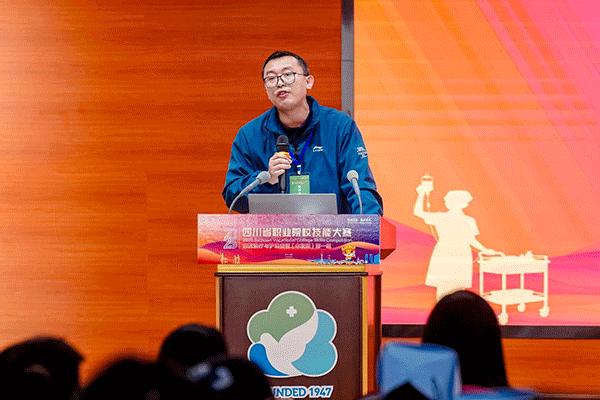 她指出,部分参赛项目存在“操作不够规范,表述不够准确”“技能难度偏低,情节雷同度高”“团队协作不足,沟通交流偏少”“展示情景夸张,不合理不真实”“创新缺乏证据,成效缺乏支撑”等问题。她还强调,技能竞赛不仅是技艺的展示,更应成为连接教学与岗位、引领教学改革的重要载体。她希望全体参赛师生以本次大赛为契机,既要肯定成绩、总结经验,更要正视差距、持续改进,在未来的学习与实践中,进一步锤炼操作规范、强化临床思维、提升综合素养,以更高标准践行卫生健康职业精神。