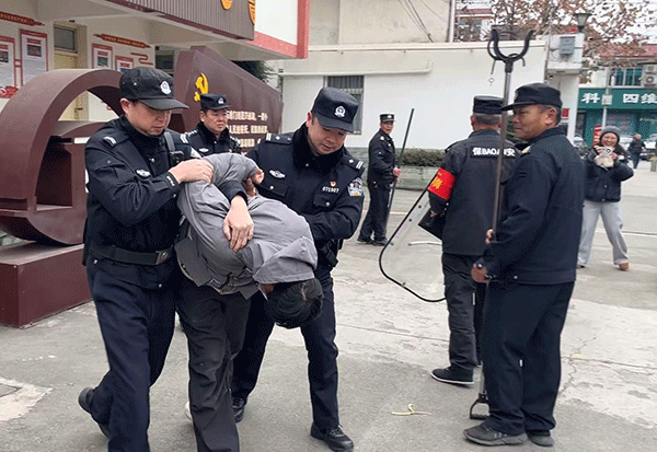 现场控制:属地公安派出所接到学校报警后,迅速抵达现场开展现场警戒、战术部署,在学校安保人员的配合下,最终成功将其制服带离,有效控制现场局势,消除安全隐患。